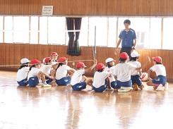 運動会に向けて、1年生ははちまきを締めて応援歌の練習です。赤、白に分かれて歌う部分があるので、自分の歌うところを間違えないように注意しながら元気に歌っていました。2年生は、はちまきを結ぶ練習をしていました。頭の後ろで結ぶので、左右均等の長さにそろえることが難しいようです(1年生については、結べない児童のものを担任の先生が結んであげているようです)。
