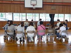 授業参観後の全体会は体育館で行いました。PTA会長あいさつ、学校長あいさつ、学力調査の結果について、学校評価と学校支援ボランティア、通知表「あゆみ」についての説明を行いました。全体会後は、11月に行われるひまわり祭についての打ち合わせを分担ごとに行いました。