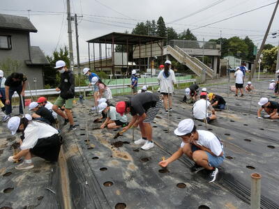 昨年度までは、コロナ感染症拡大防止のため、地域ボランティアの方々が世話をし、子どもたちは収穫された野菜を食べるだけだったようなので、やっと一緒に作業できるようになりほっとしています。