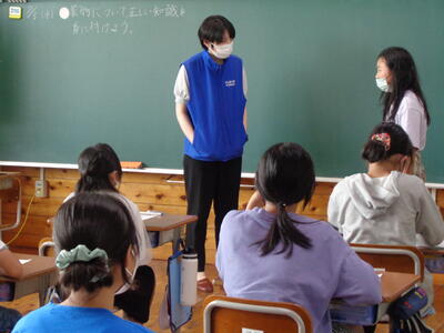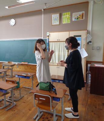朝、職員室に挨拶に来たときは少々緊張した面持ちでしたが、次第に慣れてきたようで、授業支援の際に笑顔も見られるようになりました。