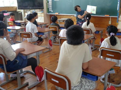 本校では地域ボランティア方による読み聞かせのほかに、年に3回「お話アワー」という本校職員による読み聞かせがあります。