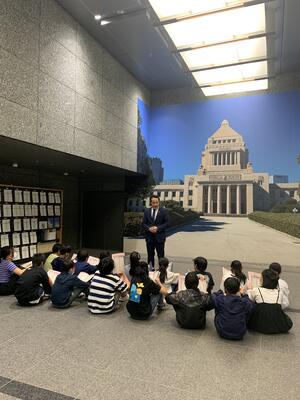 衆議院議員の簗和生様が始めから終わりまで丁寧に説明をしてくださいました。子どもたちは興味深く耳を傾け、様々な質問もしていました。