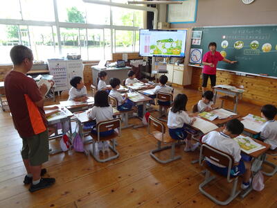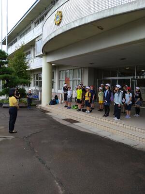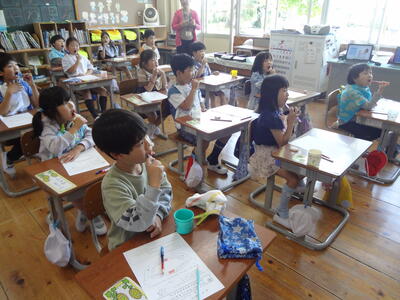 オリエンテーリングの間、校内では「県民の歌」が流れていたので、歌いながら歩く児童も見られました。