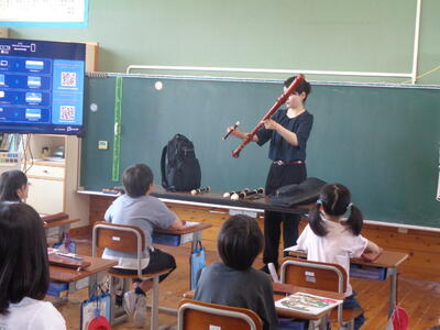 美しい音色を聴いたり、様々な大きさのリコーダーを見たりし、その都度拍手をしたり歓声をあげたりする子どもたち。聴く喜び・知る喜びを体感した1時間であったことがわかります。