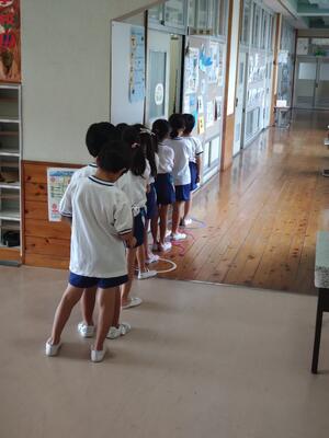 受診しない学年も、昼休みではありましたが、教師の事前の投げかけにより、昇降口から階段を上りきるまで無言で移動していました。