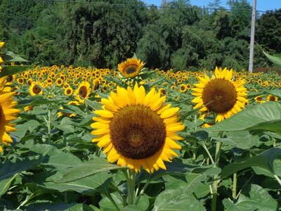 全て校舎に向かって咲いているため、残念ながら旧4号線を走る車からは、ひまわりの後ろ姿(?)しか見られないのですが、本当にきれいなので、是非本校にお立ち寄りいただき、多くの方に見ていただきたいと思います。