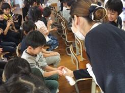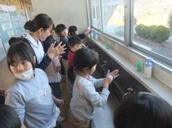 インフルエンザウイルスやノロウイルスをきちんと落とす手洗いを学ぶことができました。清潔なハンカチで拭くことの大切さも教えていただきました。ぜひ毎日ハンカチをきちんともって登校するようご家庭でもご指導ください。