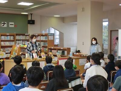 11月21日(月)、読書週間に合わせて図書事務員の先生による「ブックトーク&読み聞かせ」を実施しました。今回は3・4年生が対象で、ブックトークを行いました。3・4年生におすすめの図書5冊を紹介していただきました。新刊図書ということで子供たちにわかりやすく本の内容を伝えてくださり、子供たちも熱心に耳を傾けておりました。