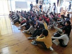 1・2年生の体育は、まず校庭にある遊具を使ってのサーキットトレーニング。そして、体育館で縄跳びです。今、乙畑小の遊びのブームは、縄跳びになってきました。