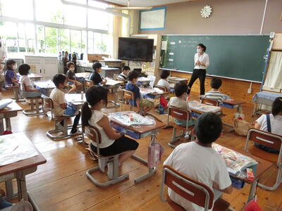 7月5日(月)に、今年度2回目の交通安全教室を実施しました。今回は、動画を視聴してそれぞれの学年に応じて指導する形をとりました。1~3年生は、クイズ形式で「危険な場面や危険な行為」について学びました。4~6年生は、動画を見ながらワークシートを使って、「安全な自転車の乗り方」について学びました。どの学年も真剣に取り組む姿がありました。