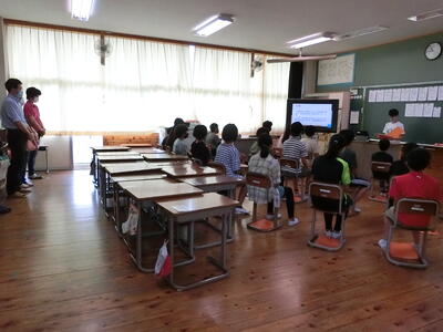 7月6日(火)に、2回目の音読集会が実施されました。今回は、1年生と5年生が担当しました。1年生は、全員で「大きなかぶ」を動きをつけながら大きな声で発表できました。5年生は、国語の時間に学習した俳句の暗唱と都道府県名を発表しました。動画による発表でしたが、視聴した他の学年からは、素敵な感想が伝えられていました。