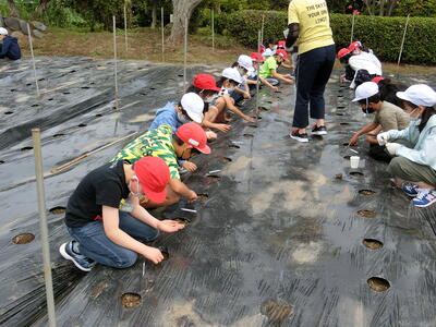 ひまわりタイム(種まき・サツマ苗植え・花壇整備)