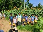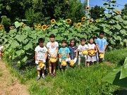 今日は、登校日。元気に登校する姿が見られ一安心。でもこの暑さで、子どもたちの額には汗がにじんで、久しぶりの登校にちょっと疲れた表情でした。学級活動の後、学級園や花壇の除草、そしてひまわり畑で記念写真と観察を行いました。最後は、全校で今期最後のプールを楽しみました。