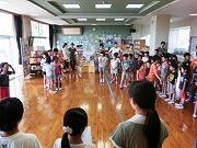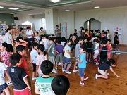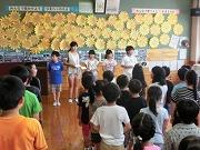 夏休み前集会では、校長先生から ①午前中の過ごし方 ②早寝・早起き・朝ごはん ③家のお手伝い についての話がありました。その後、学習指導主任、児童指導主任の話と「大雨・雷・竜巻」防災ビデオを見ながら夏休みの過ごし方を確認しました。