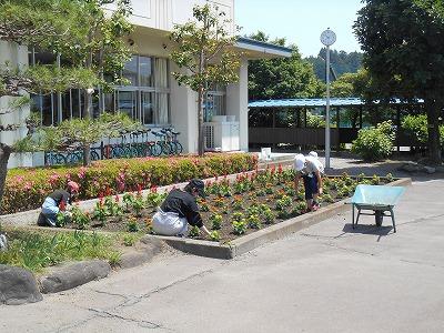 今日の緑活動は除草です。分散で行うので校舎前の花壇は4年生が担当しました。いつもは大勢で行うところなので少し大変そうでしたが、花壇がきれいになりました。校庭のあちこちにあるプランターは、3年生の担当です。一人ずつ分かれて除草をしました。短い時間ですが一生懸命働き、学校がきれいになりました。