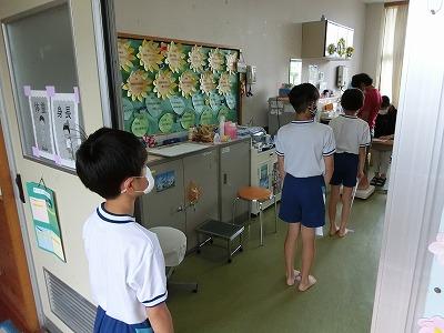 10日・11日と身体計測でした。例年なら全校で行いますが、2学年ずつ分散で行いました。各計測場所にもテープで待っている場所を指示しての実施でした。低学年もしっかり並んで計測してもらっていました。高学年からは「ぼく8センチも伸びました」の声も聞かれ、自分の成長を数字で実感していました。