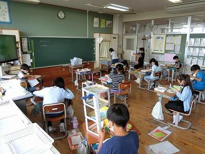 2年生の教室には6月1日から教育実習生が来ています。今日の道徳は教育実習の先生と学習しました。主人公のポンタ君はどんな工夫をしたらよいかな?自分もついやりすぎちゃうことないかな?等の質問に子ども達は一生懸命考え、たくさん意見を発表していました。先生も一緒に、みんなで考えるさわやかな授業風景でした。