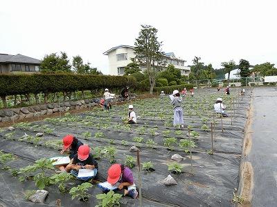 例年ひまわり班(異学年班)ごとに活動をしていたひまわり班活動ですが、今年は期間を決めて学年ごとに活動しています。今週の活動は、さつまいも植えとひまわりの観察です。暑い中でしたが、どの学年も一生懸命活動していました。