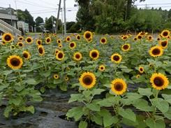 また、今きれいに咲いている南側のひまわりの前で、記念撮影もしました。ひまわりと子ども達の笑顔は、乙畑小学校のとてもすてきなところです。このように花を咲かせるためには、土作りや、マルチの設置など地域の皆さんPTA皆さんにお世話になることがたくさんありました。御協力ありがとうございました。