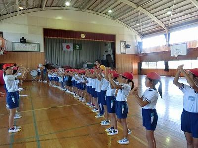 今日は、運動会練習第1日目でした。暑い日でしたが、入場行進とラジオ体操の練習をしました。今年は入場のスタイルを少し変更して練習しました。運動会は今月28日です。良い天気になりますように。