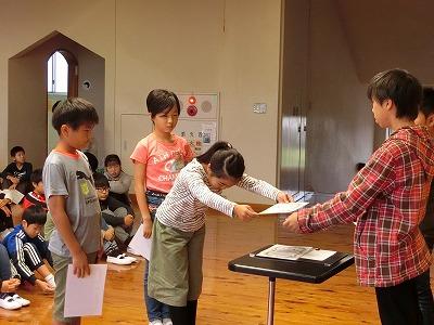 澄み渡る青空の下、持久走大会を実施しました。低学年900m中学年1200m高学年1500mを走りました。自分でペースを考えて、全員完走することができました。走り終えた子ども達の笑顔は達成感と満足感で輝いていました。