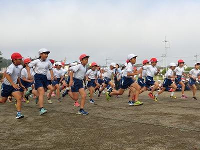 コースを覚えること、自分のペースを考えながら走ることをめあてに行いました。「走れるかなあ」と言っていた児童も、がんばって走りぬき、みんな満足の笑顔です。学年を超えて、大きな声で応援している子どもたちの姿があり、乙畑小の子どもたちの絆、あたたかいつながりを感じました。