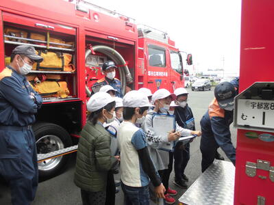 消防署を見学し、火事に素早く対応するための消防署の施設や設備の工夫に気づくことができました。