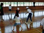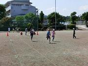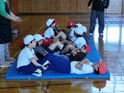 今日の業間活動は、パワーアップタイムです。校庭と体育館に分かれての体力づくりで、2・3・4年生は校庭、1・5・6年生は体育館です。体育館の1年生は、上級生と一緒に助けてもらいながら一生懸命運動していました。