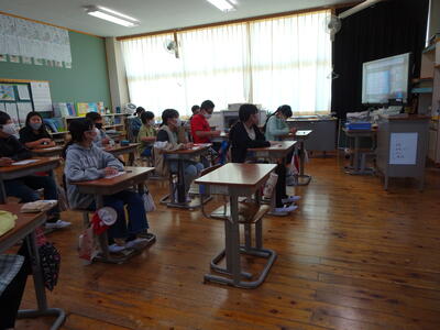 本校の卒業生である地域の方をお招きして、当時の「校歌」の歌詞が現在の歌詞とは異なっていたことや、会津中街道にまつわるお話をしていただきました。