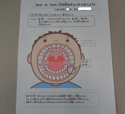 また、今年度は、児童一人一人が事前に口の中をチェックし、配付されたワークシートに記入し、それをもとに歯科医