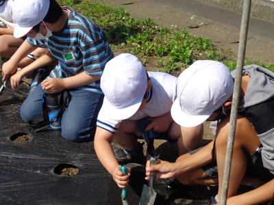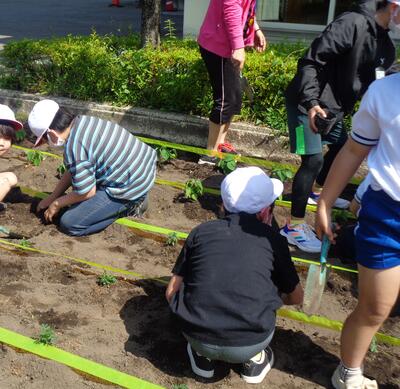 今日のひまわりタイムは、ひまわりの種まきと花の苗植えです。