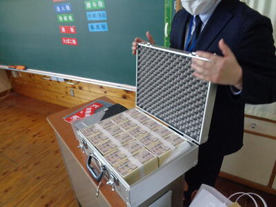 コロナ感染症対策でしばらくできなかった一億円の重さを体感する活動にも取り組むことができ、有意義な授業となりました。