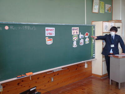 クイズの中には校長先生の名前や、先生の人数などが盛り込まれていました。