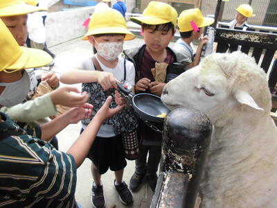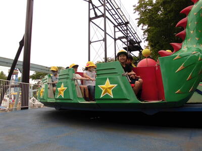縦割り班をつくり、3年生がリーダーとなって、乗り物に乗ったり動物を見たりして楽しみました。