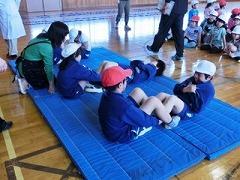 毎週火・木曜日の業間活動は、体力づくりの時間として「パワーアップタイム」を設けています。4~6月は、新体力テストの種目をベースに実施しますが、今日はその1回目ということで、種目の説明をしながら手本を低学年に見せました。