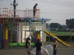 4年生の理科の授業です。大きな袋に空気をいっぱい集めていました。集めた空気で、どんな遊びを考えるのでしょう。楽しそうですね。