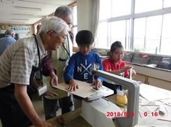 6月8日(金) 3・4校時、5年生の図工「糸のこ スイスイ」の学習に、ボランティア「ぶらぶらクラブ」の皆さんから来ていただきました。ボランティアの先生から、電動「糸のこ」の操作を手伝っていただき、児童は安全に、イメージ通りにベニヤ板を切ることができました。このあとは、色を付けて、「ホワイトボード伝言板」の完成です。「ぶらぶらクラブ」の皆さん大変お世話になりました。
