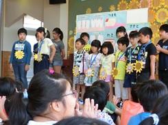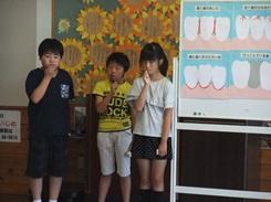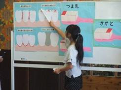 この集会は、むし歯のない人や治療がすんでいる人、歯ならびや歯の衛生状態の良い人を保健給食委員会が集会時に表彰し、みんなから「自分の歯を自分で大切に守ろう」という気持ちをもってもらおうということがねらいです。「歯と口の健康週間」にちなんで行いました。メダルつくりや歯の磨き方のも演示など、保健給食委員会の児童がみんなで準備してきました。全校生のむし歯の予防、そしてむし歯の治療率向上も目指しています。みなさん、自分の歯は自分でしっかり守りましょう。そしてむし歯はすぐに治療しましょう。 (担当 養護教諭)