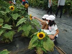 9月4日(月)5校時 全校ひまわりタイムを行いました。まずはひまわり班ごとにひまわりの花と共に記念撮影です。畑の南側のひまわりが8割くらいきれいに咲いています。もう少しで見ごろでしょうか。次にそれぞれのワークシートにひまわりとサツマイモの観察です。咲いている花を観察する子もいれば、大きく首を垂れて種を実らせているひまわりを観察する子もいました。
