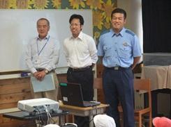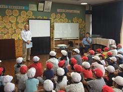 訓練終了後、全校生で多目的ホールに集合し、学校外での不審者対応についてDVDを視聴し、指導者の3人の先生から講話をいただきました。登下校の場面の話や、下校後の安全についてもお話いただき、子ども達はとても興味深くお話を聞いていました。