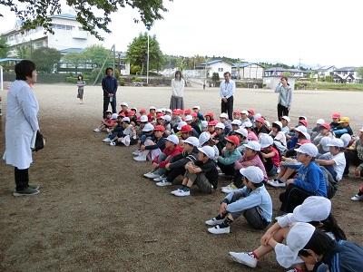 今年度初めての避難訓練をしました。十連休明けだったので少し心配しましたが、避難経路を確認しながら、静かに避難することができました。地震や火事はいつ起こるかわかりません、日ごろの訓練がとても大切です。