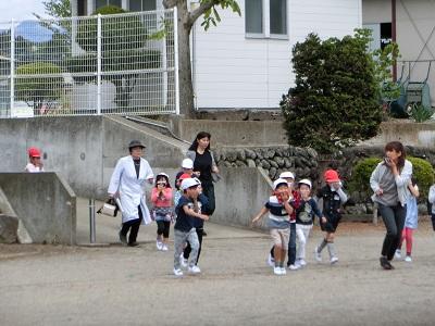 今年度初めての避難訓練をしました。十連休明けだったので少し心配しましたが、避難経路を確認しながら、静かに避難することができました。地震や火事はいつ起こるかわかりません、日ごろの訓練がとても大切です。