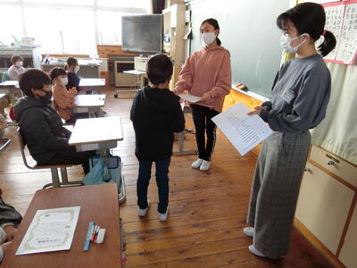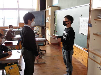 3月1日(火)に今年度最後の委員会集会(オンライン形式)が行われました。今回は「図書掲示委員会」の担当で、内容は、各学年の多読賞並びに「乙畑ベスト80」(当該学年の図書)をすべて読み終えた児童の表彰でした。委員さんが各学年の教室に出向いて表彰状を渡していました。これからも多くの児童が本に親しみ、読書量が増えていくことを期待します。