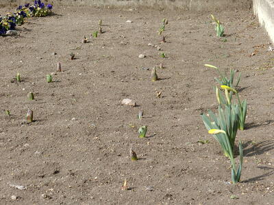 今日から3月となり、校庭の花壇や樹木にも春の訪れが感じられるようになりました。校舎前の花壇にはスイセンの黄色い花が咲き始め、チューリップの芽が顔をのぞかせています。体育館に向かう渡り廊下の近くにある梅の木も花芽がふくらみ、少しずつ花を咲かせてきました。春の気配を感じながら乙畑っ子は1年間のまとめに向けて頑張っています。
