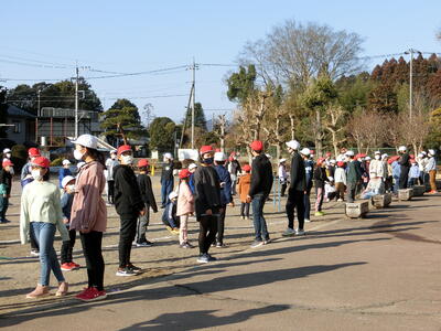 明日《3月3日(木)》から新登校班(仮)での登校になることから、各登校班ごとに集合し、班のメンバーの確認をしました。6年生については、それぞれの登校班に入って見守りをします。明日から安全に登校できるように係の先生や各地区担当の先生からお話をいただきました。