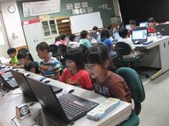 7月13日 ICT支援員による1・2年生のパソコン教室がありました。1年生は「はじめてのパソコン」と題して、起動の仕方やマウスの動かし方を学習しました。2年生は「パソコンでお絵かき」と言うことで、お絵かきソフトを使ってお絵かきを楽しみました。1年生も2年生も真剣な態度でパソコンに向かっていました。