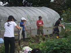 3年生は畑に蒔いたにんじんの周りの除草もがんばりました。ひまわり畑では今年の新品種「ソーラービーム」がまだ元気よく咲いていました。