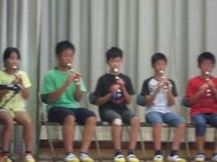 9月27日(水)に行われる地区学校音楽祭合奏の部で、本校の5・6年生全員による合奏を発表します。曲目は「栄光の架け橋」です。大変難しい曲ですが、夏休みからからずっと練習を続け、最初はうまくリズムが取れなかったところも。各パート同士の呼吸も合わせて、とても上手になりました。9月に入ってからは放課後体育館で練習を続けています。