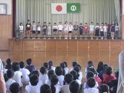 本日の朝会は、明日の地区音楽祭参加への壮行の意味も込め、5・6年生による合奏「栄光の架け橋」の発表会でした。緊張した面持ちでしたが、とても美しい演奏でした。初めて聞いた1年生から4年生は「みんなの笛がそろっていてきれいでした。」「上手だなあと思いました」と感想を発表していました。