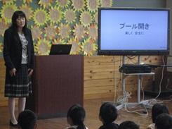 「プールの中のお魚拾いをできるようにしたい」というめあてや「バタフライで25m泳ぎたい」というめあてなど大きな声で発表できました。今年のプールでの学習が楽しみになりました。